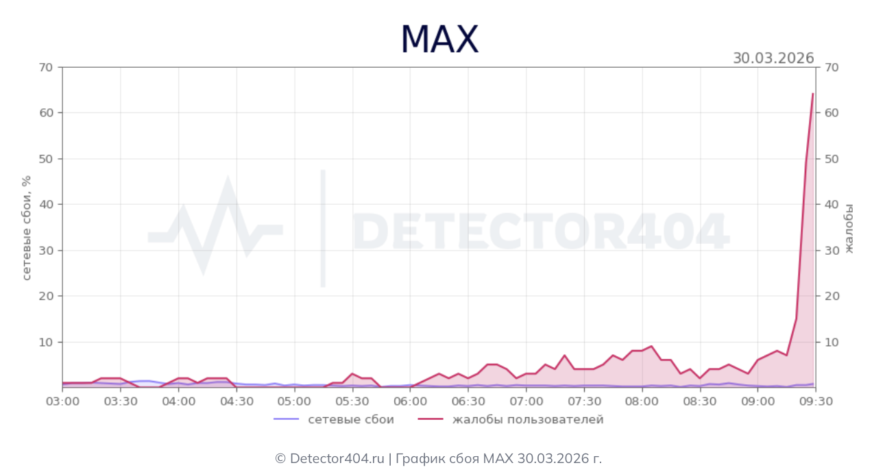 Утром 30 марта 2026 года пользователи из разных регионов России начали массово жаловаться на сбой в работе мессенджера MAX. После 9 утра у многих перестали отправляться сообщения, не загружались фотографии и видео, а также возникли проблемы с уведомлениями и входом в приложение.